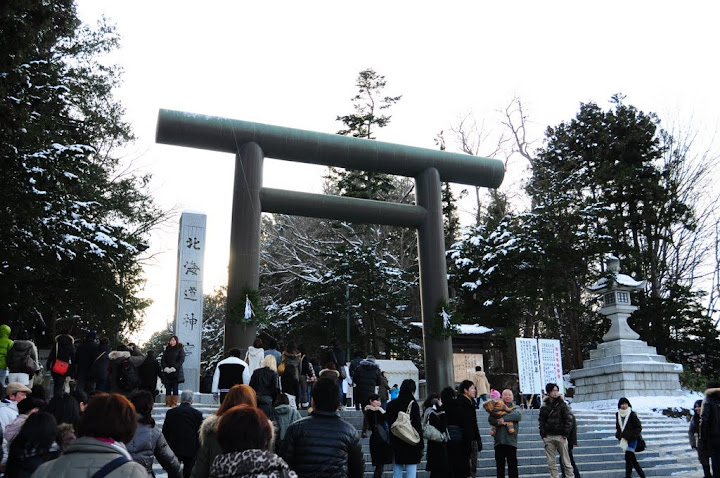 在大年初一前往寺廟參拜, 買了一日卷,前往了位於圓山公園的北海道神社, 一下車站才發現, 原來大家都來神