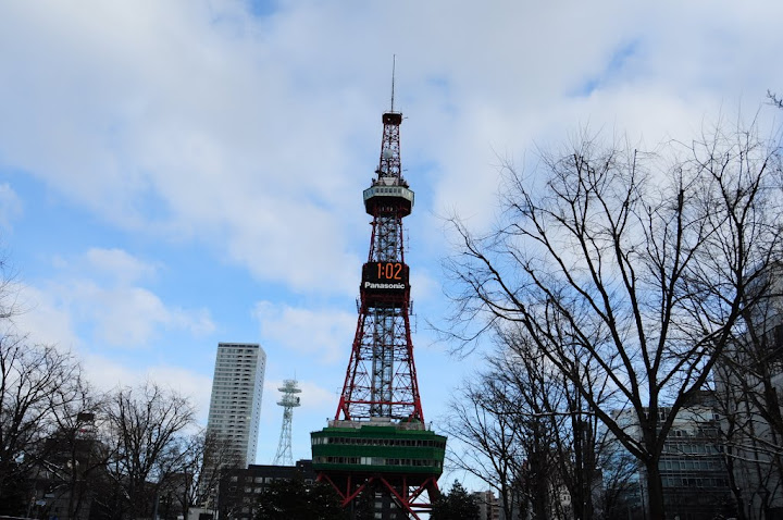 札幌的街道, 街道還是冷清, 商店都休息著, 信步走到了大通公園, 拍了白天的鐵塔, 繞到離公園不遠處的”二