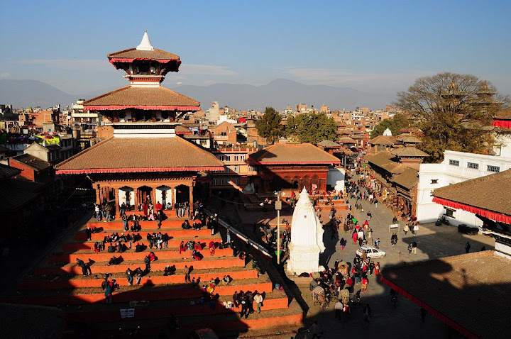 之王, 因此頗受尼人敬仰, 廣場中最崇高廣大的廟宇即為” Shiva Temple”, 為三層屋簷且底下有九台階高台的