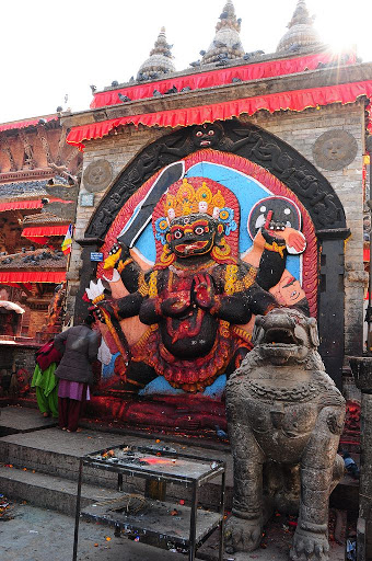 因此才會有如此這般特殊的廟宇雕繪. 另外最讓遊客駐足的則是活女神廟”Kumari Bahal”, 活女神可說是
